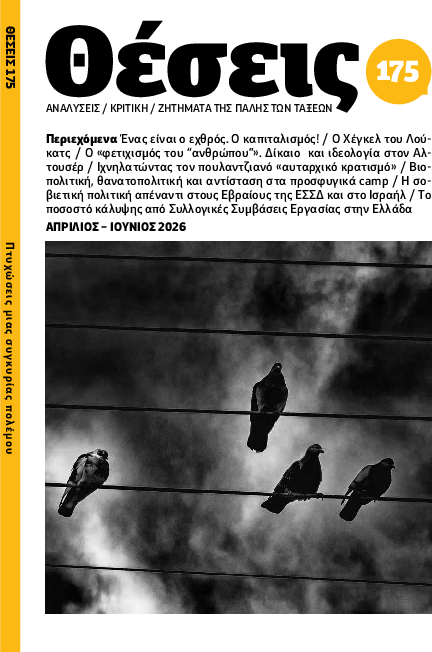 Κυκλοφορεί από τις Εκδόσεις των Συναδέλφων, το τεύχος 175 των Θέσεων (περίοδος Απρίλιος - Ιούνιος 2026) με τίτλο Πτυχώσεις μιας συγκυρίας πολέμου. Διατίθεται στα βιβλιοπωλεία, καθώς και από τις Εκδόσεις των Συναδέλφων, Καλλιδρομίου 30, 10681 Αθήνα, τηλ. 210-3818840, email: Αυτή η διεύθυνση ηλεκτρονικού ταχυδρομείου προστατεύεται από τους αυτοματισμούς αποστολέων ανεπιθύμητων μηνυμάτων. Χρειάζεται να ενεργοποιήσετε τη JavaScript για να μπορέσετε να τη δείτε..